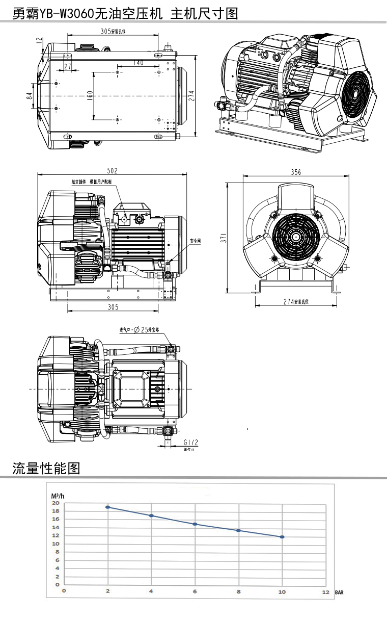 勇霸无油静音空压机系列产品规格参数表: